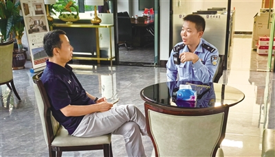 海口海秀派出所民警辛世元到学校沟通回访。记者黄君 摄